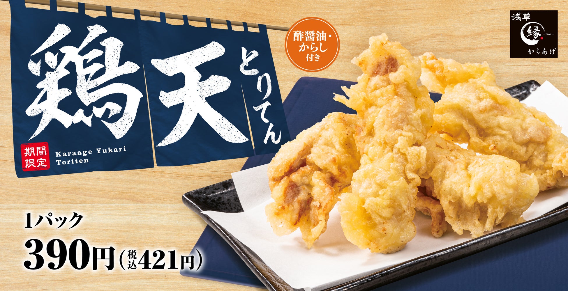 2010年5月に浅草総本店をオープンしたからあげのテイクアウト専⾨店「からあげ縁(ゆかり)」は、ニンニク・⽣姜不使⽤の秘伝のタレに1⽇漬け込み、旨味を逃がさないよう商品ごとに独⾃の製法を確⽴。からあげは、ご注⽂を頂いてから揚げ始め、カラッと⾹ばしい揚げたてをご提供しております。