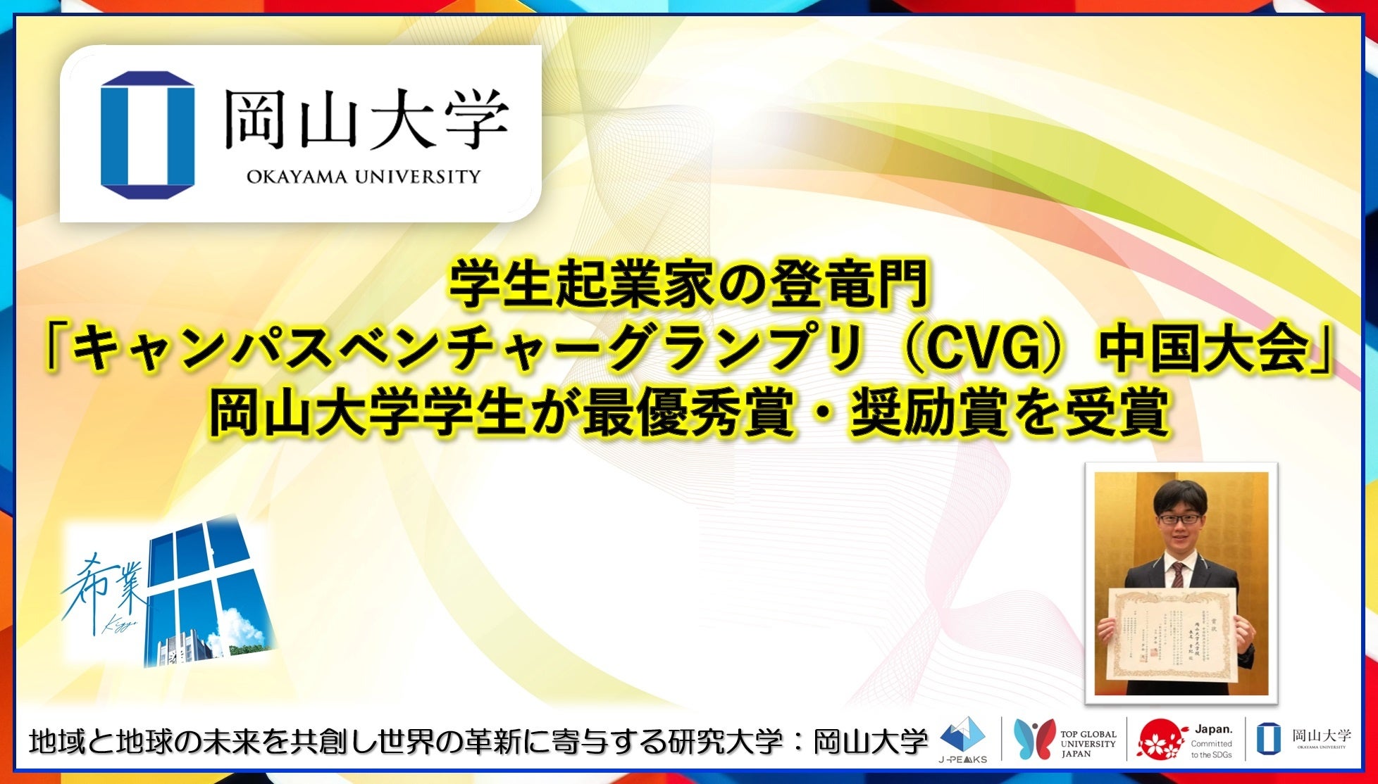 ・【岡山大学】学生起業家の登竜門「キャンパスベンチャーグランプリ(CVG)中国大会」で本学学生が最優秀賞・奨励賞を受賞