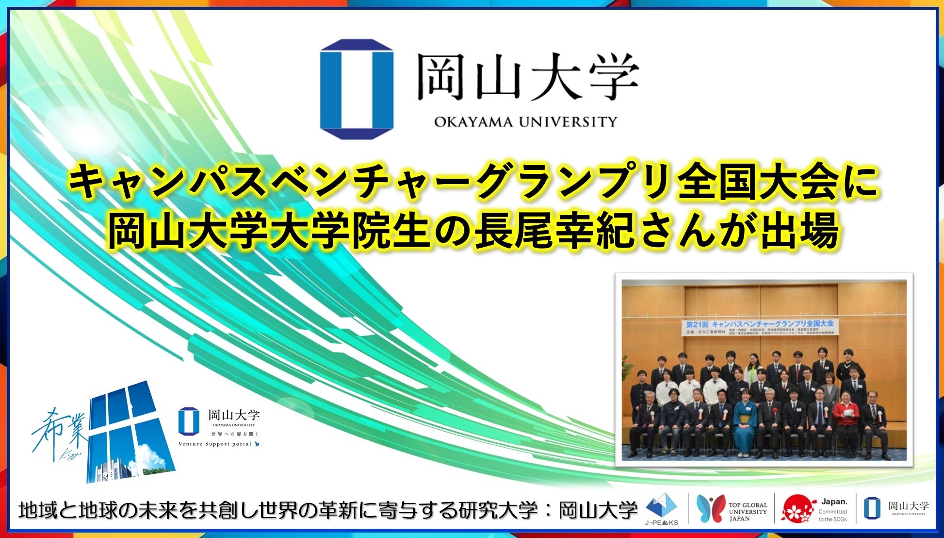 ・【岡山大学】キャンパスベンチャーグランプリ全国大会に岡山大学大学院生の長尾幸紀さんが出場