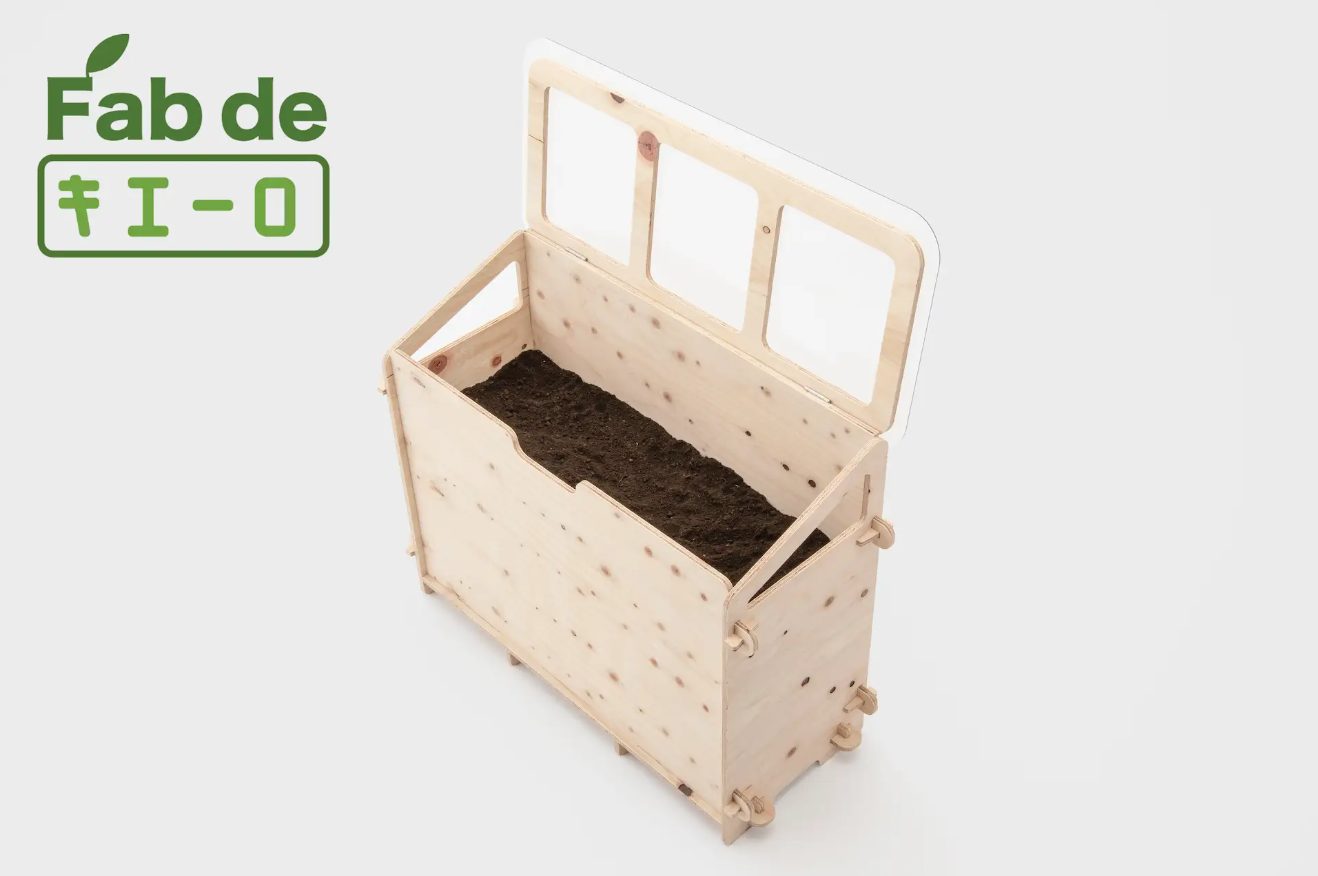 「FAB de キエーロ」は、土の中の微生物(バクテリア)の力で生ごみを分解する、電気も水も使わないエコ生ごみ処理器「キエーロ」を、デジタルファブリケーション技術で再設計したモデルです。本製品は、プラモデルのように簡単に組み立てられる点が大きな特長です。