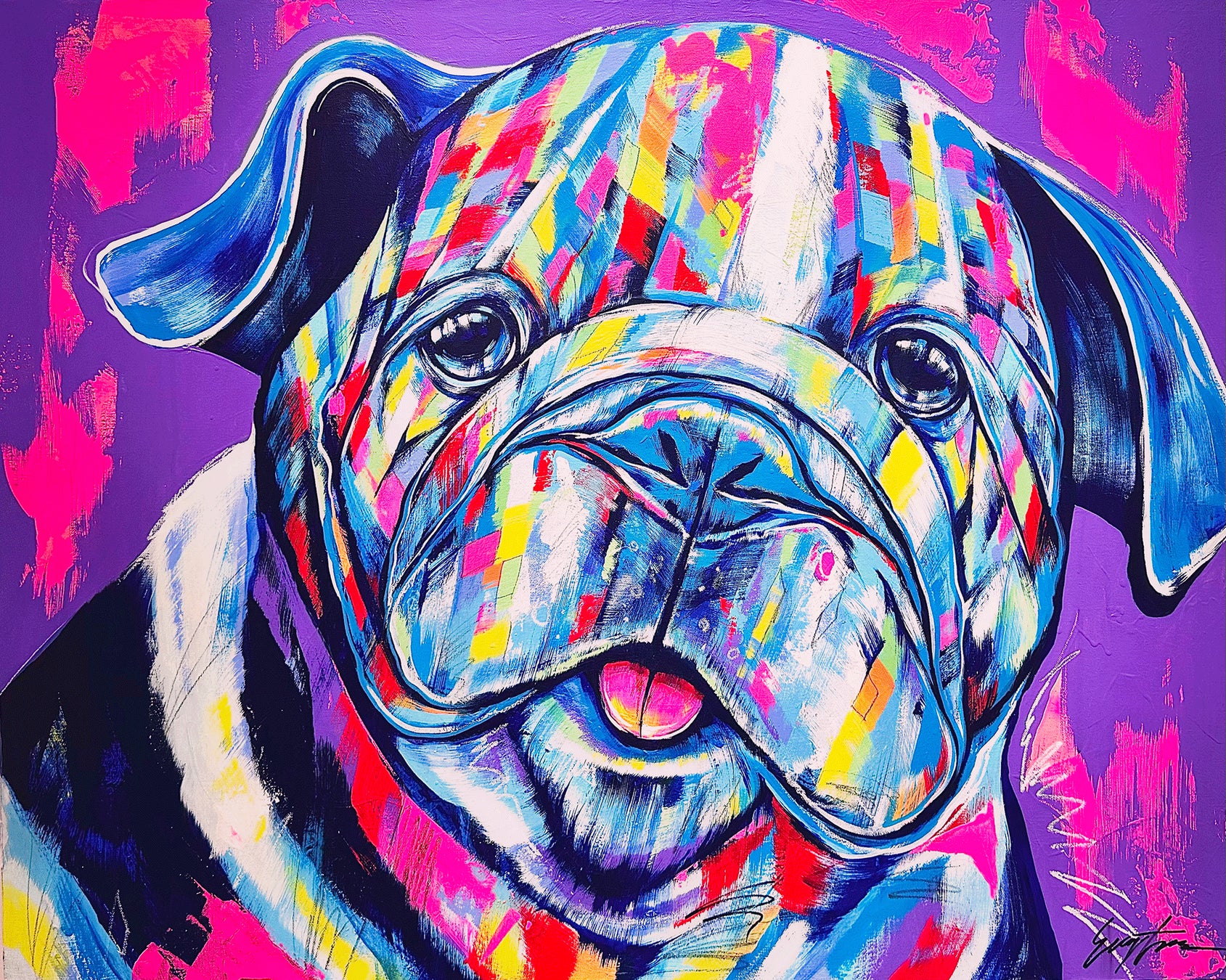 20代の頃、ニューヨークやロサンゼルスのストリートアートに触れ、独自のアートスタイルを確立したEIJI TAMURA DOG ARTは、カラフルでポップなタッチで愛犬を描き続けてきました。